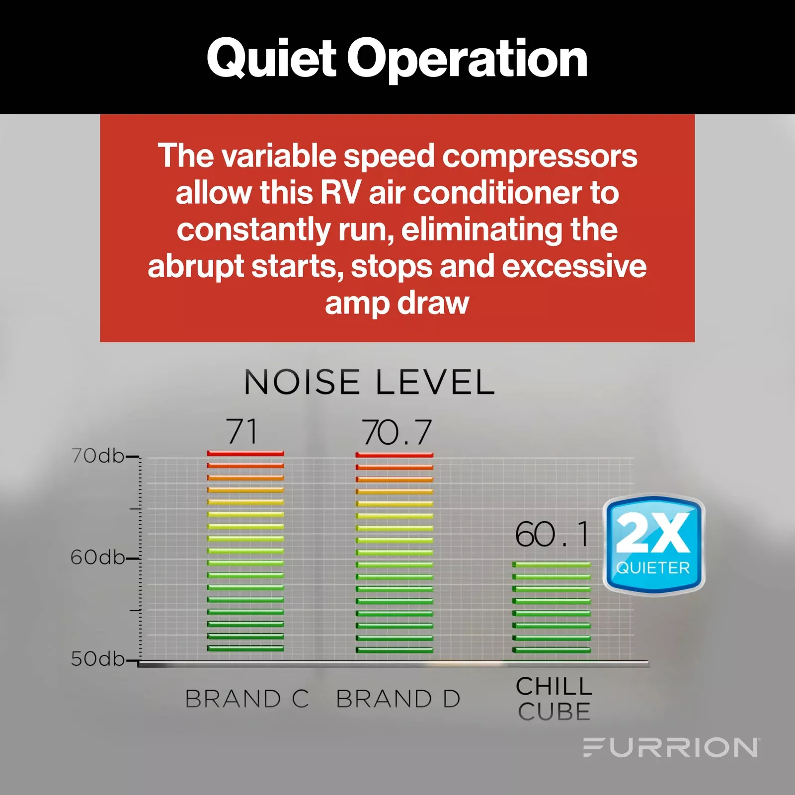 The Furrion Chill Cube RV Rooftop Air Conditioner delivers industry-leading performance with 18,000 BTUs of cooling power. Designed for ducted systems, it efficiently cools your entire RV using R32 refrigerant for lower environmental impact. With variable speed operation and Furrion’s durable engineering, this rooftop unit offers powerful, quiet, and energy-efficient comfort on the road.