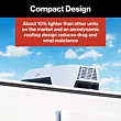 Equipped with VibrationSmart™ technology, the system easily withstands road shocks and vibrations. Its ClimateSmart™ engineering ensures dependable performance across a wide range of outdoor conditions, from blazing summer heat to cooler evenings. The aerodynamic design of the Chill Cube reduces drag and improves fuel economy while on the road, and leaves ample room on the rooftop for pop tops and solar panels.