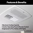 The low-profile housing blends neatly into your ceiling, minimizing bulk while maximizing airflow. Detachable filters make cleaning simple and help maintain air quality inside your RV. In addition to the convenience of the included remote control, you can also use the panel on the air distribution box to adjust the temperature controls. This unit also includes the option of adding a controller and wall thermostat for even more flexibility and customization.