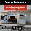 The variable speed design automatically adjusts output to meet your cooling needs while lowering operating noise. This improves energy efficiency, reduces power draw, and creates smoother, quieter operation compared to traditional single-speed systems. The variable speed compressors in this unit adjust their speeds based on the amount of cooling needed, rather than cycling on and off on a single speed. This eliminates sudden noises due to constantly turning on/off, and provides improved dehumidification. The compressors are also designed to gently increase speed, which means they will use lower amperage to avoid tripping circuit breakers.